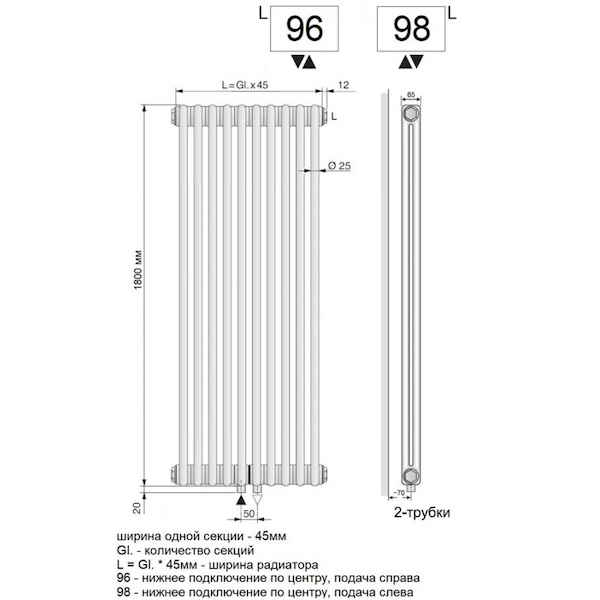 Перед приобретением радиаторов, уточнить параметры магистрали отопления РЭО на соответствие с основными параметрами радиатора.