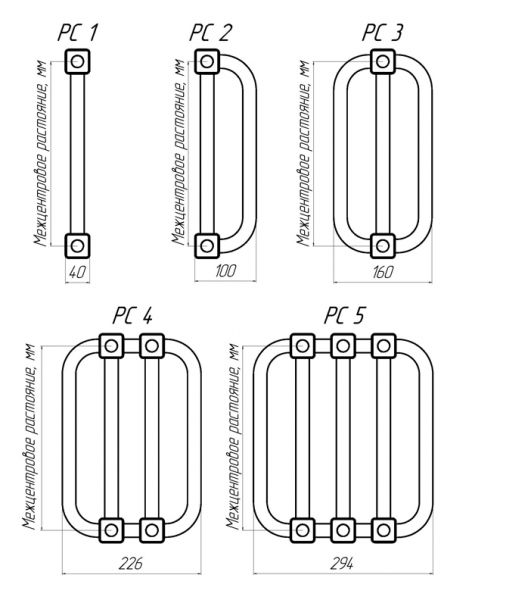 Центральные вертикальные трубки всегда прямые, крайние выгнуты от центра (кроме модели РС/РСК-2)