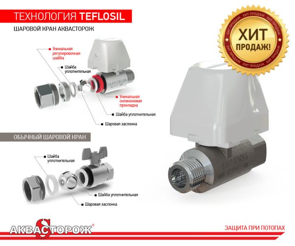 «Умный кран» «Аквасторож Эксперт» – уникальный кран с полным контролем работоспособности (ДУ 15 мм).