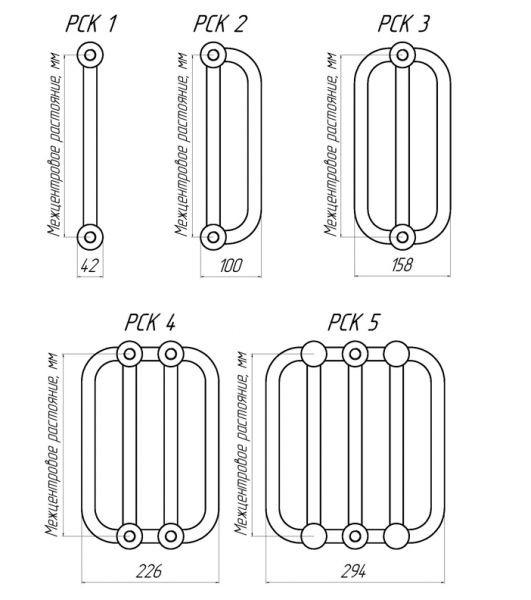 Центральные вертикальные трубки всегда прямые, крайние выгнуты от центра (кроме модели РС/РСК-2)